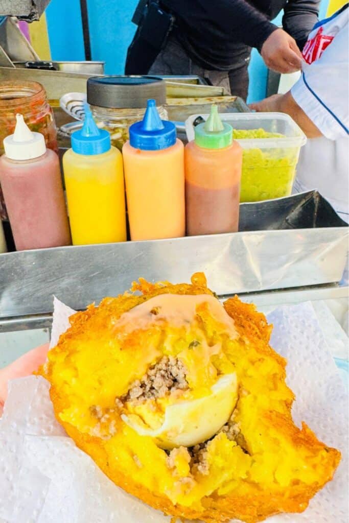 Buñuelos, oft gefüllt mit Käse, Schokolade oder Arequipe.