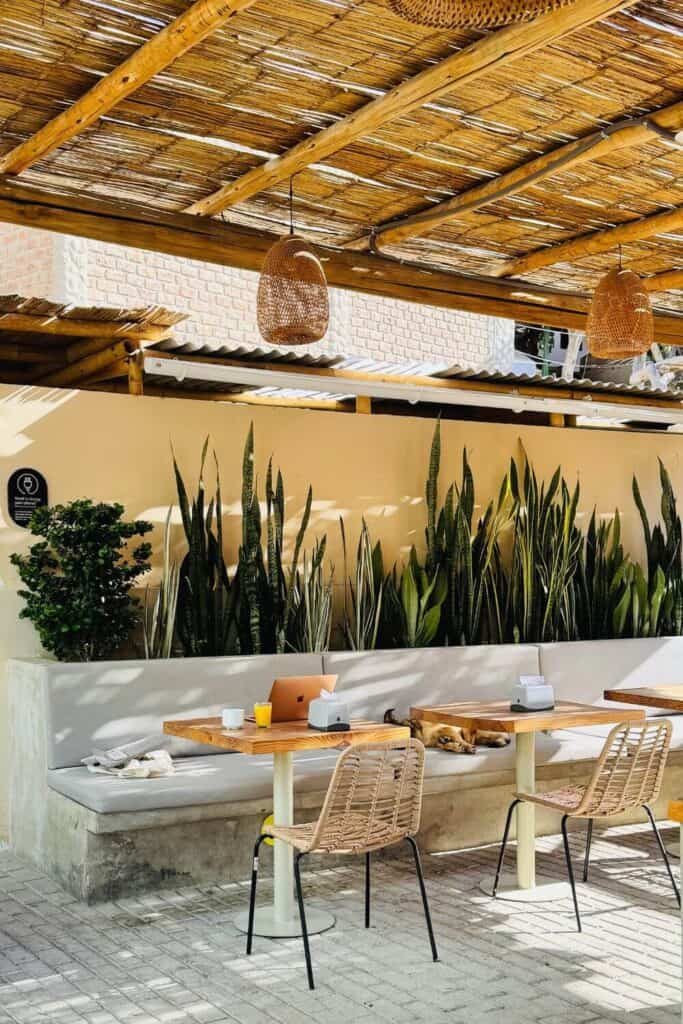 • schöne Outdoor-Coworking-Bereiche im Boho Stil
